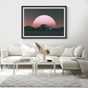 Plakat w czarnej ramie - Geometryczne góry z zachodzącym słońcem w tle - 70x50cm - W sąsiedniej galaktyce - Nowoczesna dekoracja ścienna do salonu i sypialni ARTTOR