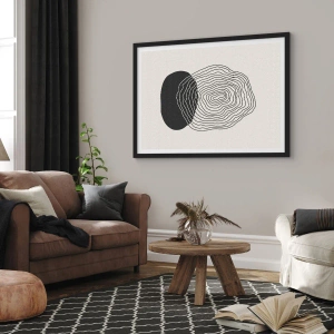 Plakat w czarnej ramie - Abstrakcyjny wzór z liniami i kształtami w czerni i bieli - 70x50cm - Trwanie i drganie - Nowoczesna dekoracja ścienna do salonu i sypialni ARTTOR