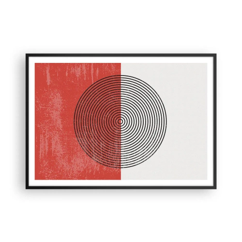 Plakat w czarnej ramie - Geometryczny wzór z koncentrycznymi kołami na czerwono-białym tle - 100x70cm - W samo sedno - Nowoczesna dekoracja ścienna do salonu i sypialni ARTTOR