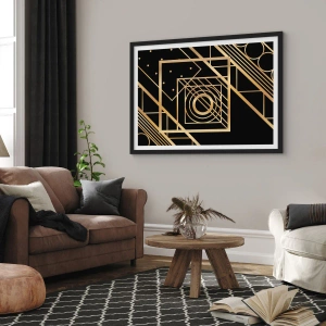 Plakat w czarnej ramie - Złota geometria - 40x50 cm