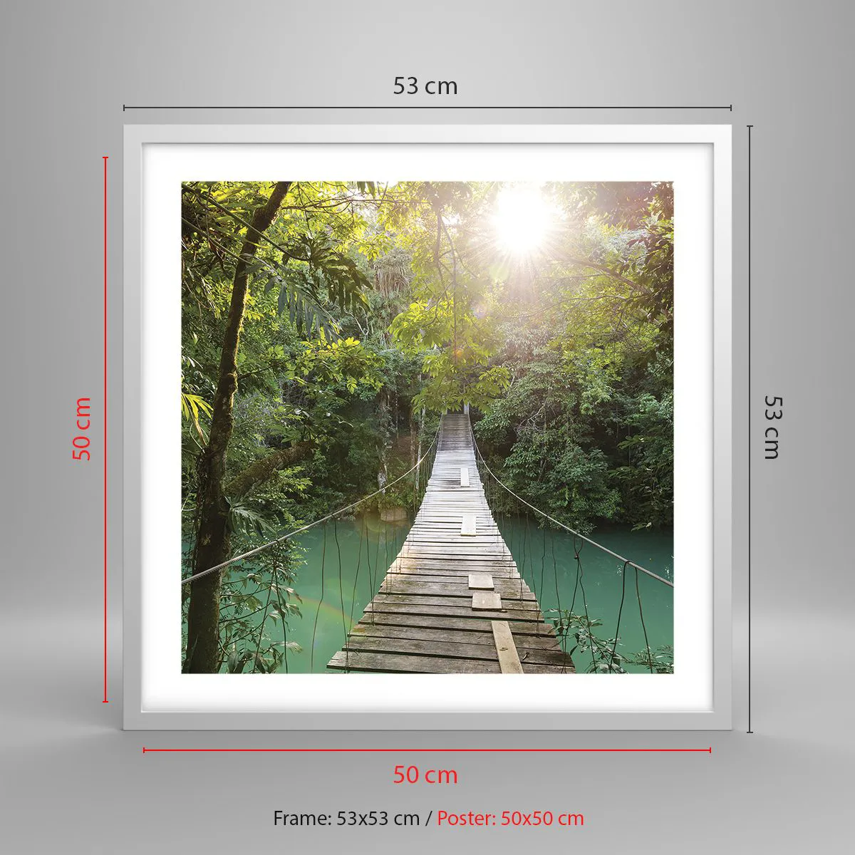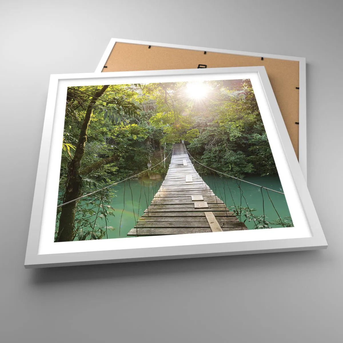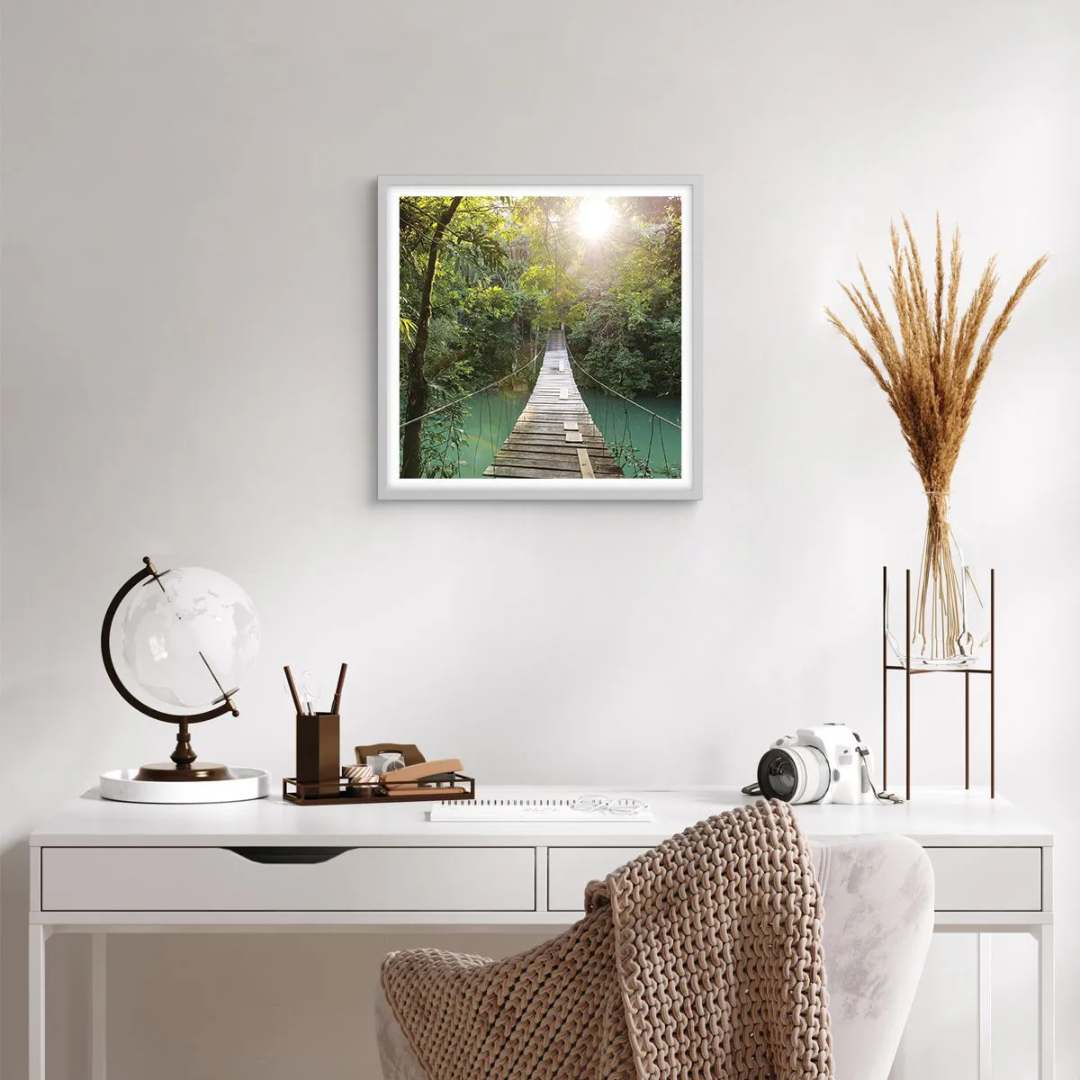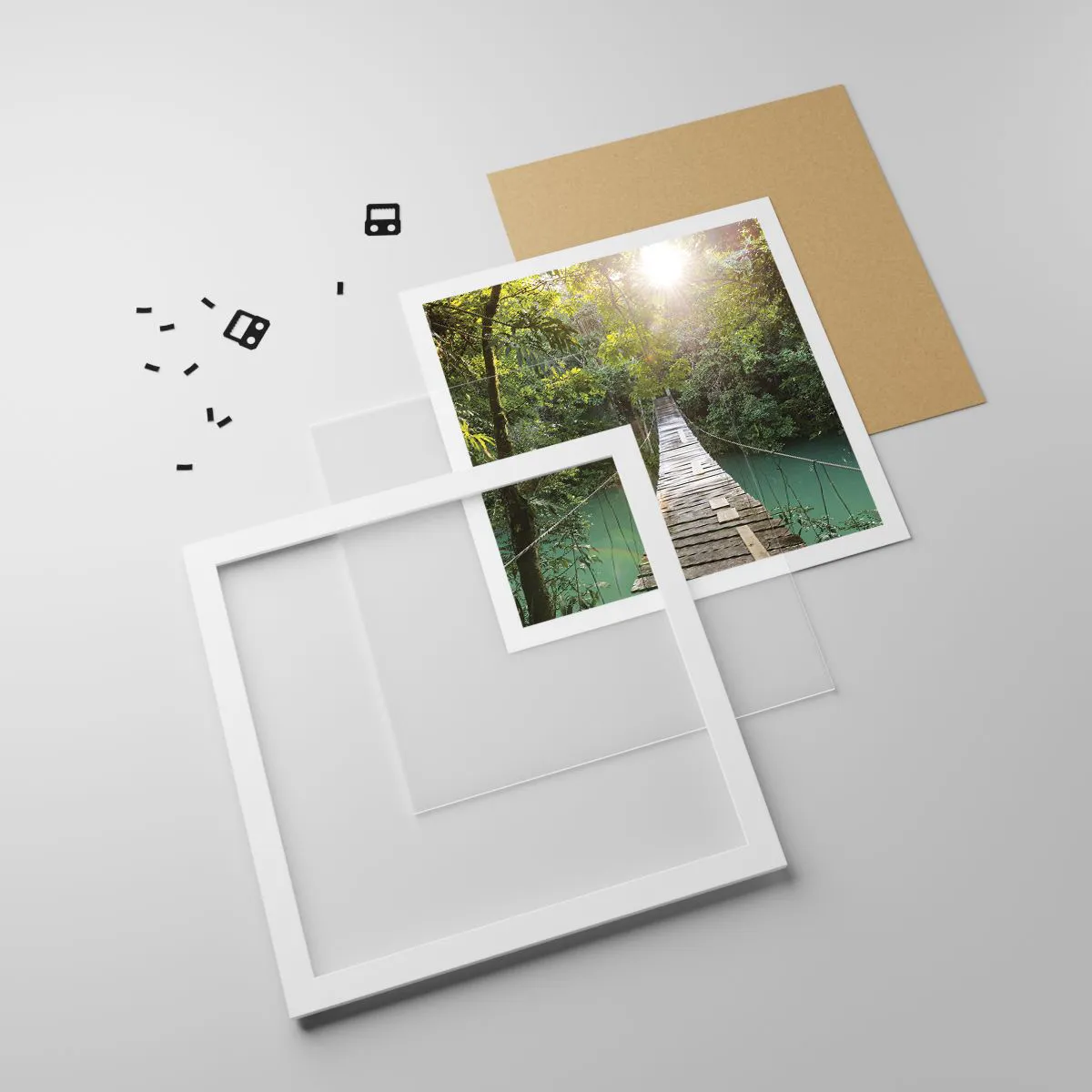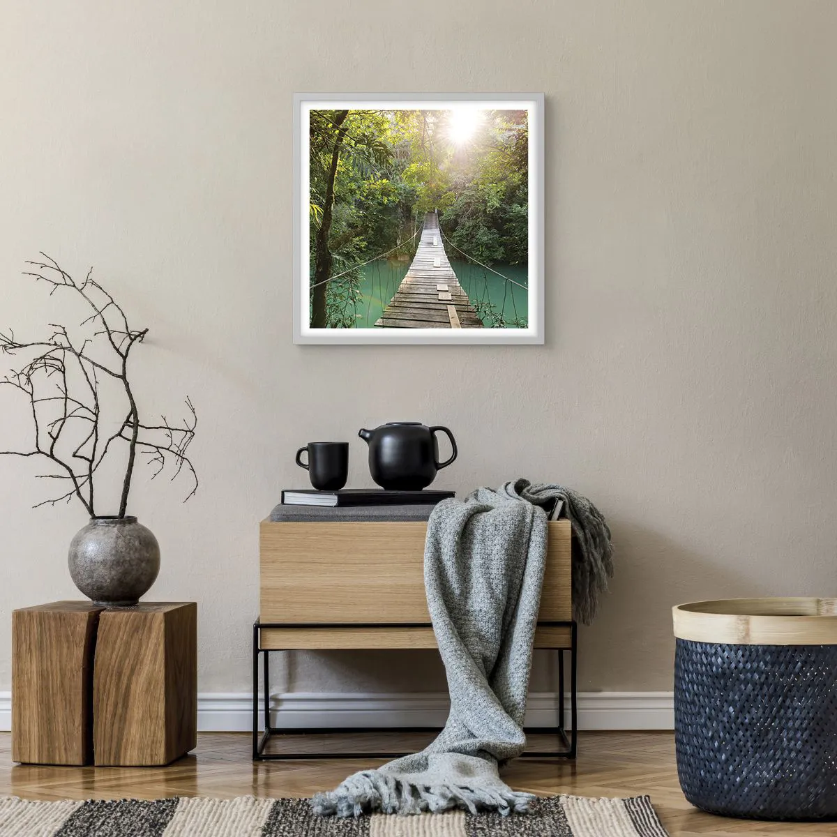 Plakat w białej ramie - Nad lazurową wodą do lazurowego lasu - 50x50 cm