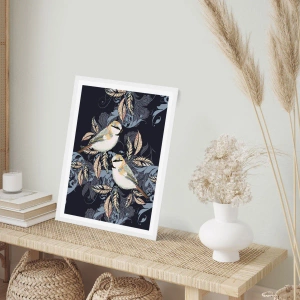 Plakat w białej ramie - Żółto-błękitny trel - 30x30 cm