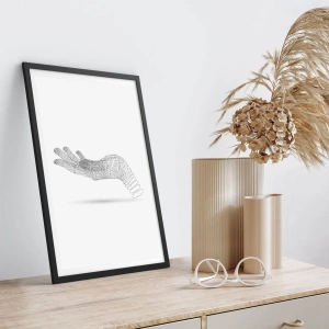 Plakat w czarnej ramie - Abstrakcyjna ręka z linii na białym tle - 50x70cm - Sprężysta dłoń - Nowoczesna dekoracja ścienna do salonu i sypialni ARTTOR