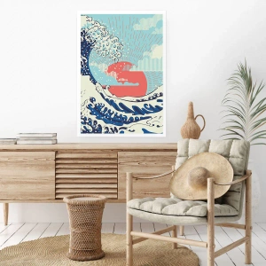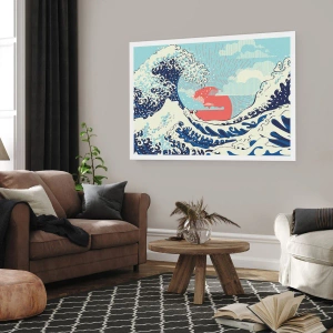 Plakat - Graficzna fala inspirowana japońskim stylem z czerwonym słońcem - 50x70cm - Z japońskich inspiracji - Nowoczesna dekoracja ścienna do salonu, kuchni i sypialni ARTTOR