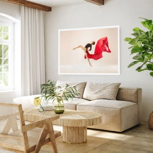 Plakat - Dynamiczna tancerka w czarnym stroju i czerwonej tkaninie w ruchu - 100x70cm - Czerwone i czarne - Nowoczesna dekoracja ścienna do salonu i sypialni ARTTOR