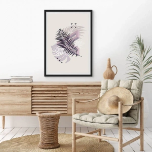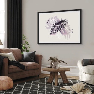 Plakat w czarnej ramie - Minimalistyczna kompozycja z liśćmi i geometrycznymi kształtami - 70x50cm - Cień cienia - Nowoczesna dekoracja ścienna do salonu i sypialni ARTTOR