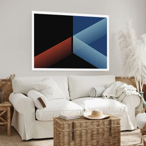 Plakat - Geometryczne linie w odcieniach czerwieni i błękitu - 100x70cm - Prosta historia - Nowoczesna dekoracja ścienna do salonu i sypialni ARTTOR