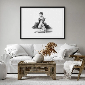 Plakat w czarnej ramie - Szkic baletnicy w subtelnym, klasycznym stylu - 70x50cm - Zaczarowana tańcem - Nowoczesna dekoracja ścienna do salonu i sypialni ARTTOR