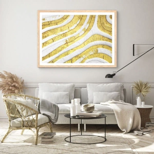 Plakat w ramie jasny dąb - Kompozycja w bieli i złocie - 60x60 cm