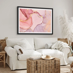 Plakat w czarnej ramie - Delikatne abstrakcyjne wzory w odcieniach różu i złota - 100x70cm - Pieszczota barw - Nowoczesna dekoracja ścienna do salonu i sypialni ARTTOR