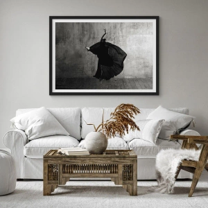 Plakat w czarnej ramie - Czarno-białe ujęcie tancerki w dynamicznym ruchu na tle surowej ściany - 50x70cm - Pełne pasji pas - Nowoczesna dekoracja ścienna do salonu i sypialni ARTTOR