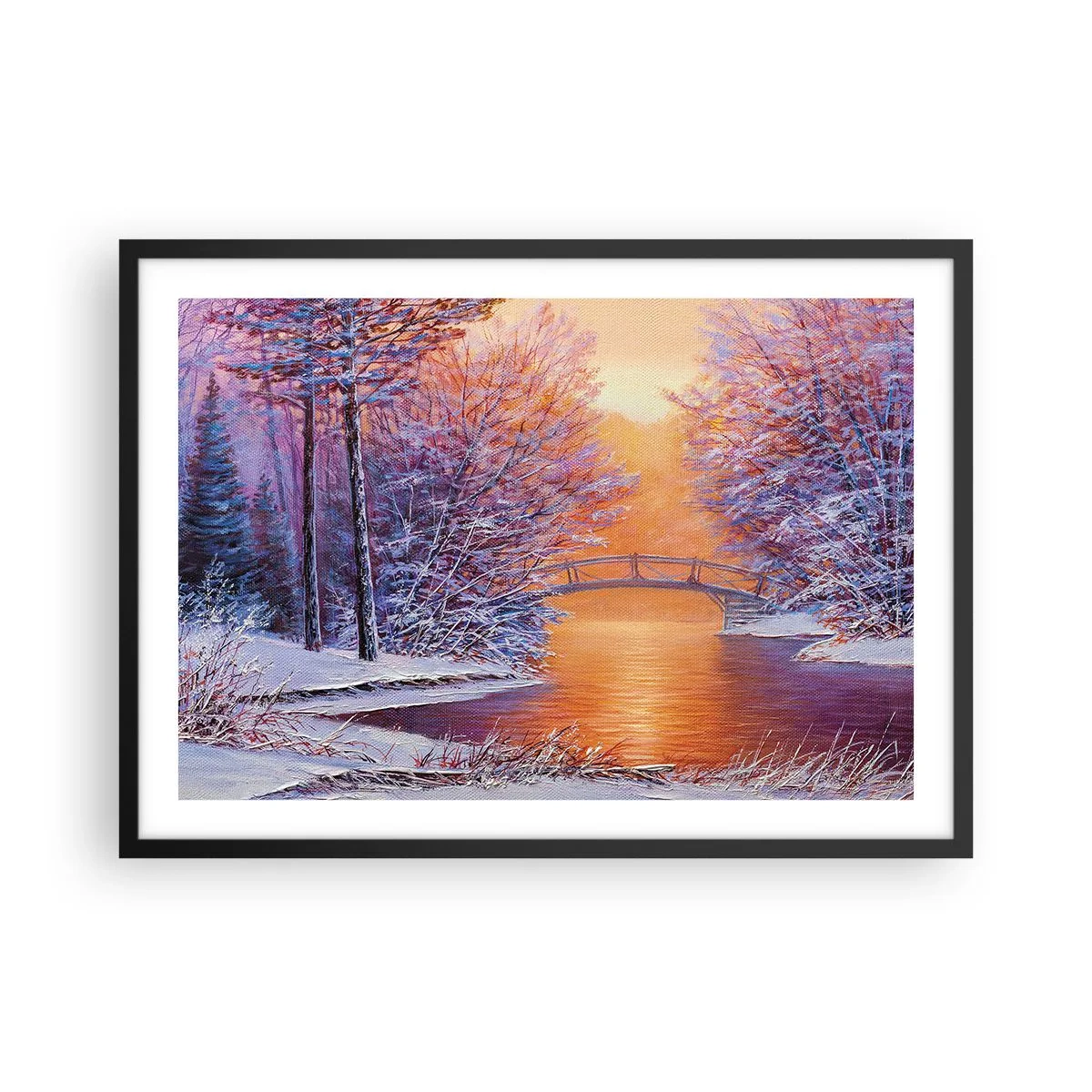 Plakat w czarnej ramie - Zimowy krajobraz z mostkiem i zachodem słońca - 70x50cm - Spotkajmy się tu - Nowoczesna dekoracja ścienna do salonu i sypialni ARTTOR