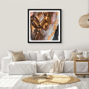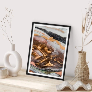 Plakat w czarnej ramie - Abstrakcyjna kompozycja z elementami złota i kryształów - 70x50cm - Żywioł ziemi - Nowoczesna dekoracja ścienna do salonu i sypialni ARTTOR