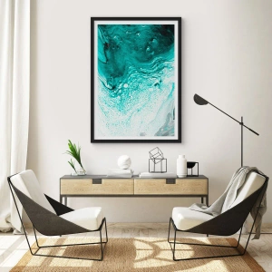 Plakat w czarnej ramie - Abstrakcyjny wzór w turkusie i bieli - 50x70cm - Rozpłynąć się w bieli i turkusie - Nowoczesna dekoracja ścienna do salonu i sypialni ARTTOR