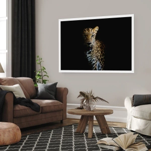 Plakat - Leopard na ciemnym tle z intensywnym spojrzeniem - 100x70cm - Mroczne piękno - Nowoczesna dekoracja ścienna do salonu i sypialni ARTTOR