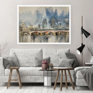 Plakat - Miejski krajobraz z mostem i wieżowcami w tle - 50x70cm - Londyn w całej okazałości - Nowoczesna dekoracja ścienna do salonu, kuchni i sypialni ARTTOR