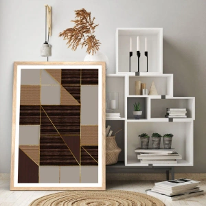 Plakat w ramie jasny dąb - Mozaika brązów i złota - 70x50 cm