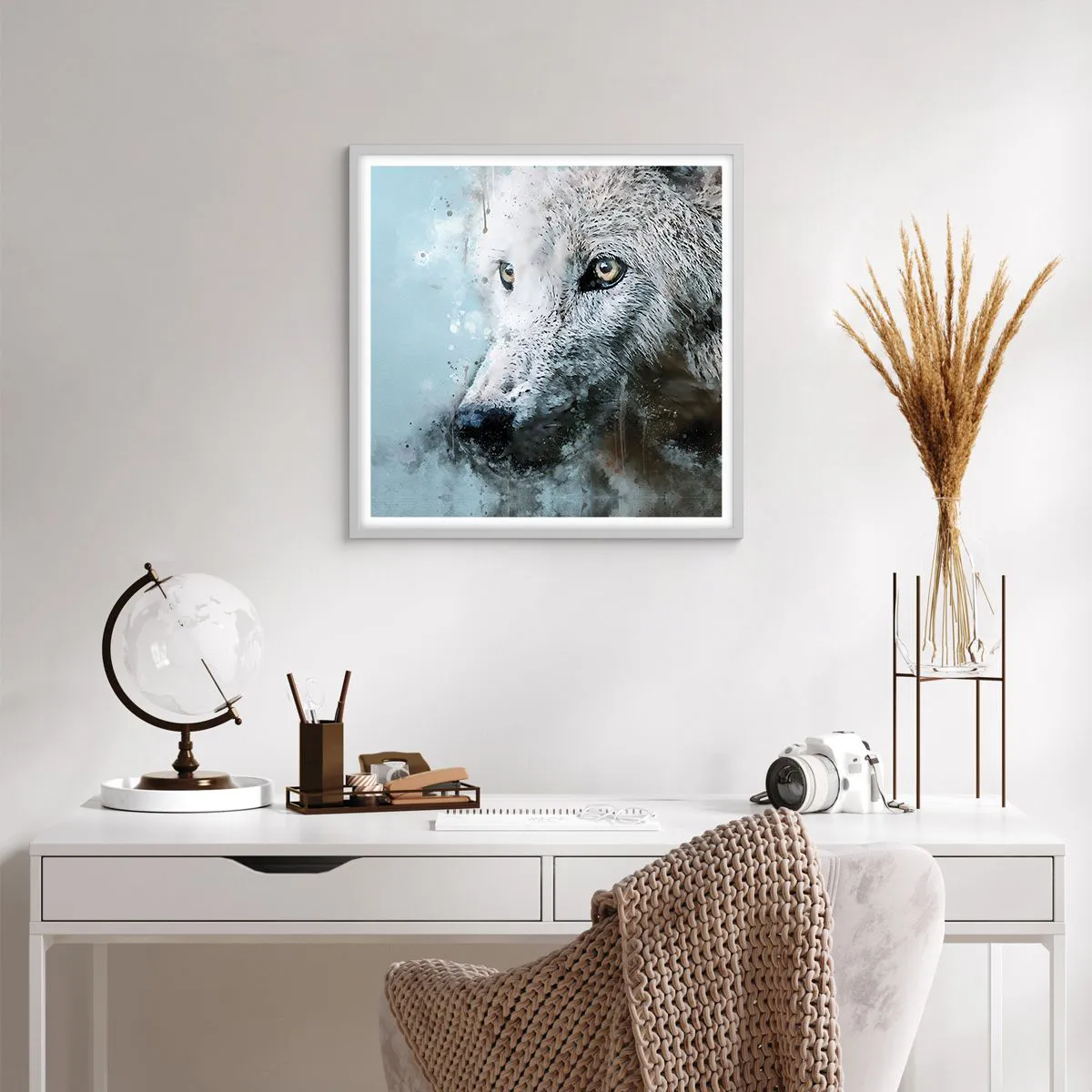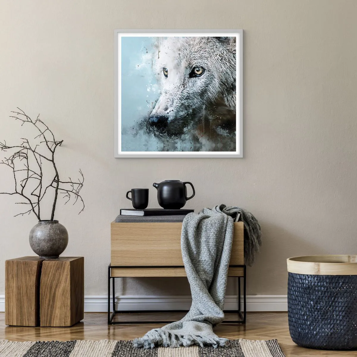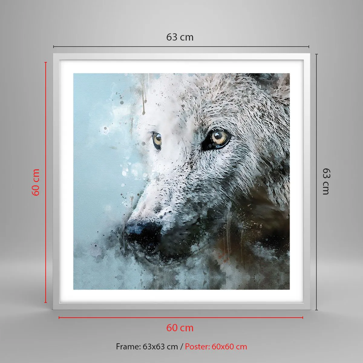 Plakat w białej ramie - Poznaj wilczą duszę - 60x60 cm