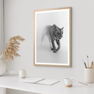 Plakat w ramie jasny dąb - Przyczajony we mgle - 70x50 cm