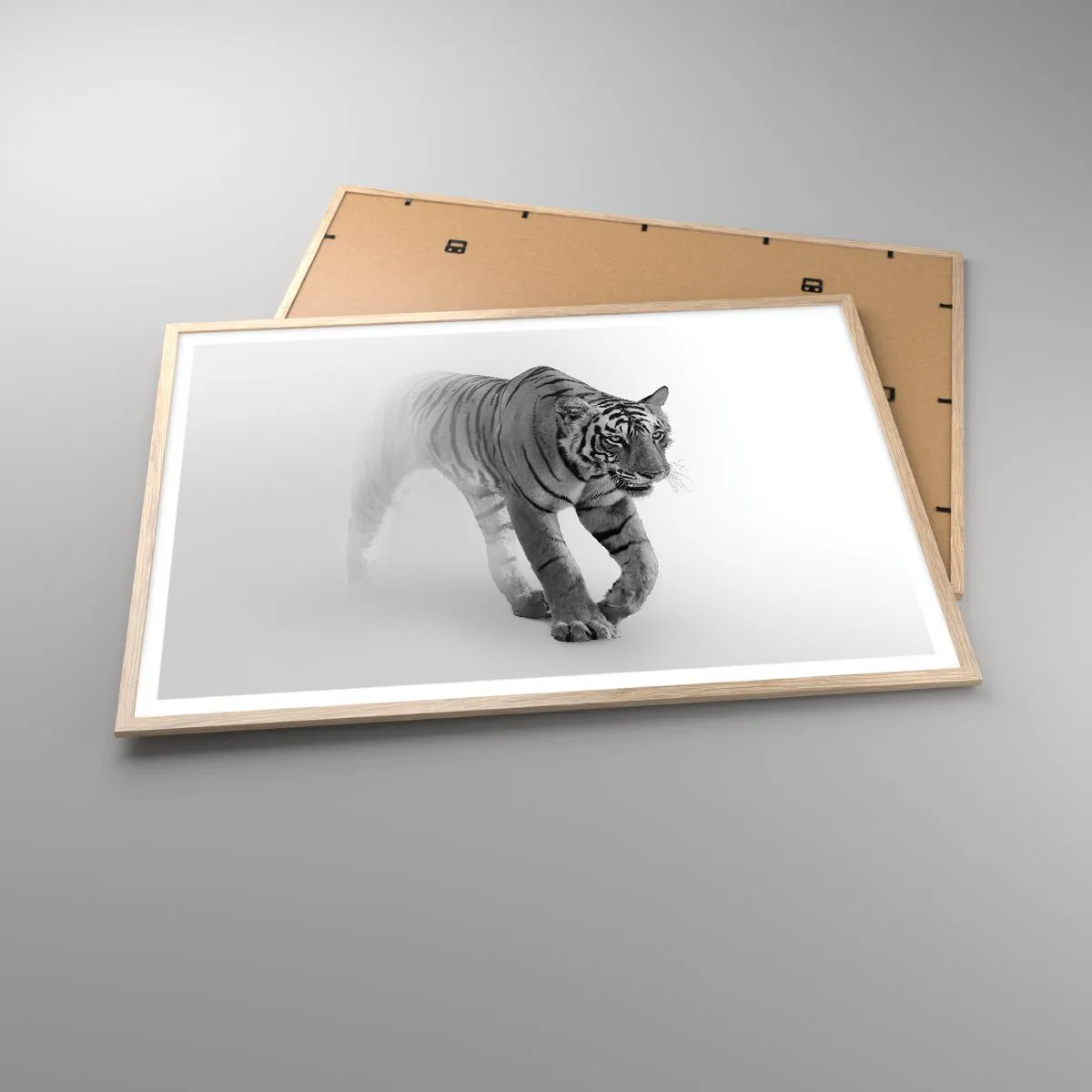 Plakat w ramie jasny dąb - Przyczajony we mgle - 100x70 cm