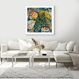 Plakat w białej ramie - Liściasta fantazja - 40x40 cm