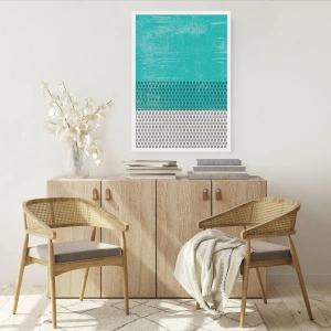 Plakat - Geometryczny wzór z turkusowymi i białymi elementami w minimalistycznym stylu - 50x70cm - Kompozycja zrównoważona - Nowoczesna dekoracja ścienna do salonu, kuchni i sypialni ARTTOR