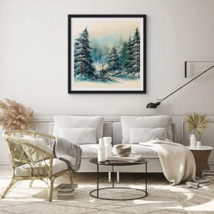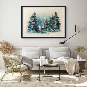 Plakat w czarnej ramie - Zimowy krajobraz z zaśnieżonymi drzewami - 70x50cm - Gotowe do Świąt - Nowoczesna dekoracja ścienna do salonu i sypialni ARTTOR