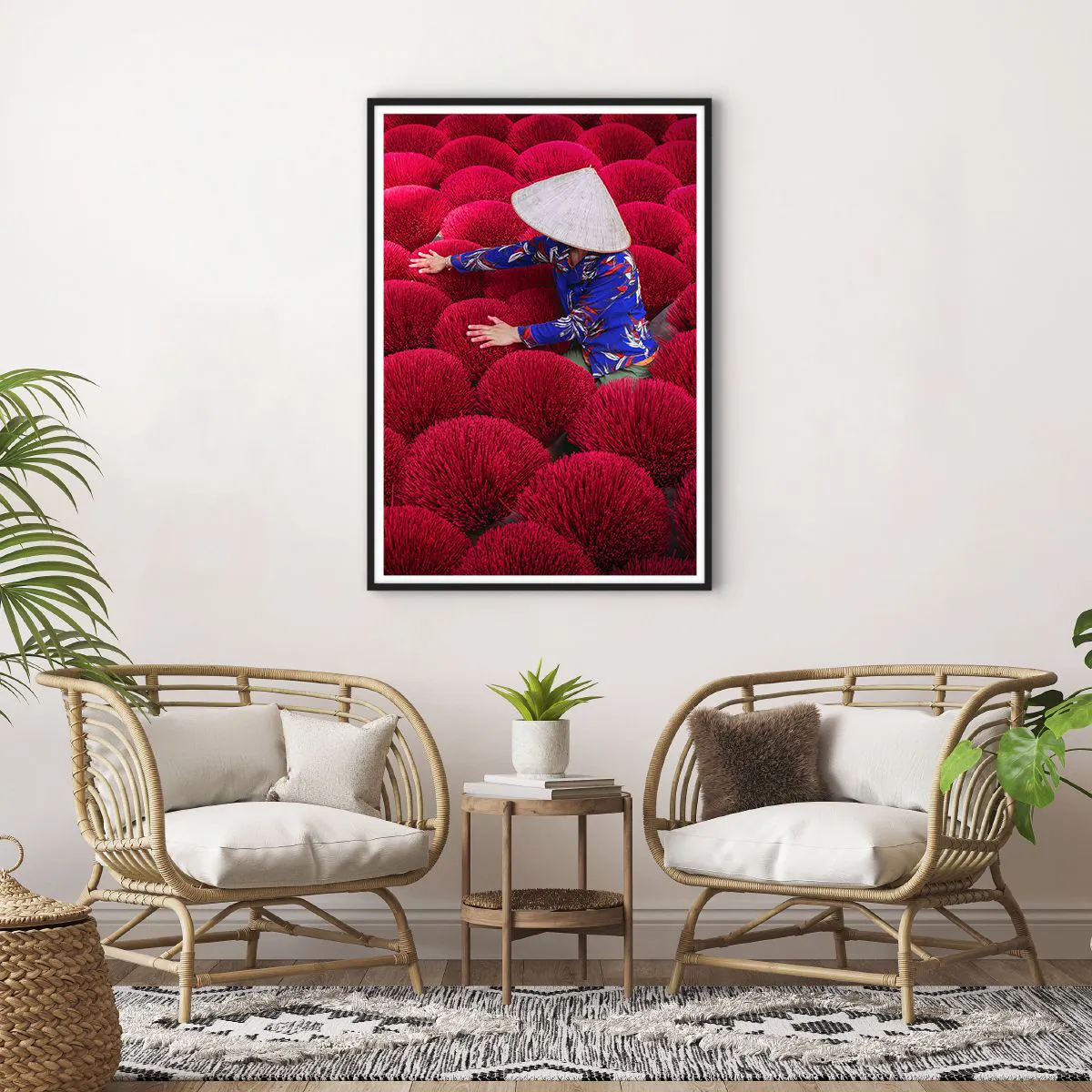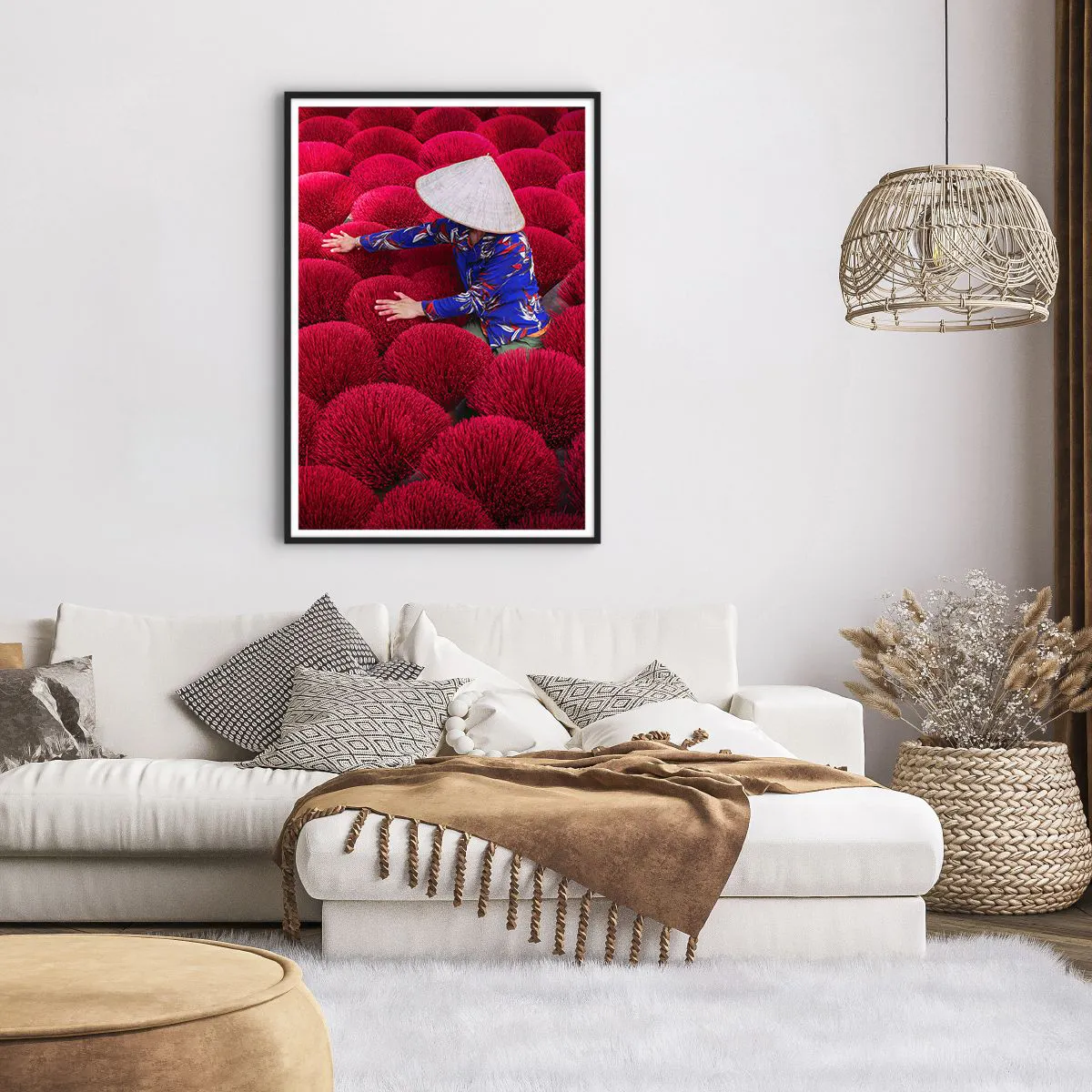 Plakat w czarnej ramie - Na ryżowym polu - 70x100 cm