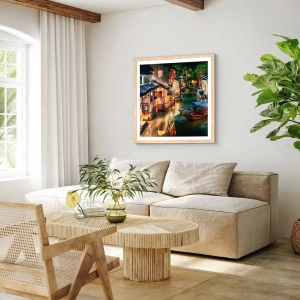 Plakat w ramie jasny dąb - Wieczór na chińskiej ulicy - 70x50 cm