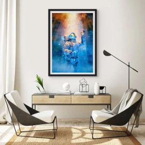 Plakat w czarnej ramie - Astronauta w świetle kosmicznej eksplozji pełnej gwiazd - 70x50cm - Wreszcie u celu - Nowoczesna dekoracja ścienna do salonu i sypialni ARTTOR