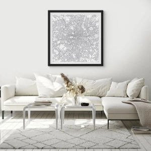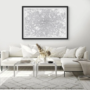 Plakat w czarnej ramie - Minimalistyczna mapa miasta w odcieniach szarości - 70x50cm - Mapa londyńskiego labiryntu - Nowoczesna dekoracja ścienna do salonu i sypialni ARTTOR