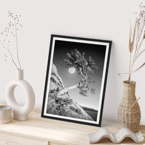 Plakat w czarnej ramie - Czarno-białe drzewo na klifie z księżycem w tle - 70x50cm - Zwycięska wojowniczka - Nowoczesna dekoracja ścienna do salonu i sypialni ARTTOR
