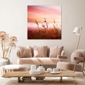 Obraz na płótnie - Pole traw na tle malowniczego zachodu słońca - 100x70cm - Latawce, dmuchawce, wiatr - Nowoczesna dekoracja ścienna do salonu, kuchni i sypialni ARTTOR