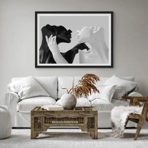 Plakat - Przyciąganie – pożądanie - Czarno-biała kompozycja dwóch twarzy w bliskim kontakcie