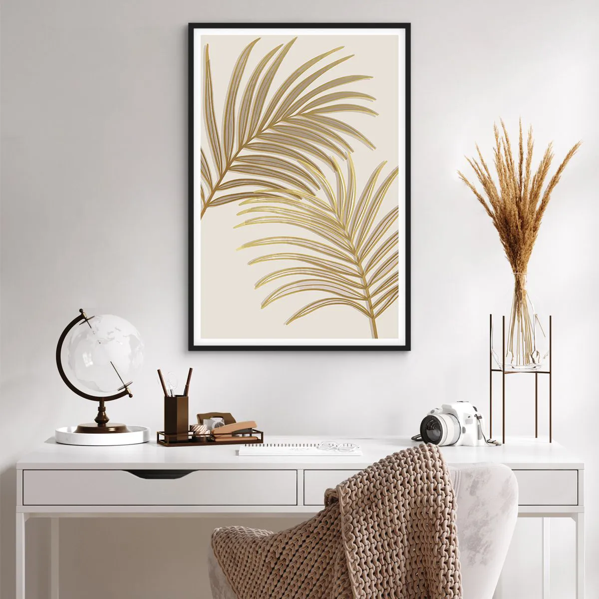 • Abstrakcja, Liść Palmy, Grafika, Botanika, Natura , Do biura, Do gabinetu, Do jadalni, Do przedpokoju, Do salonu, Do sypialni, Złoty , Pionowy