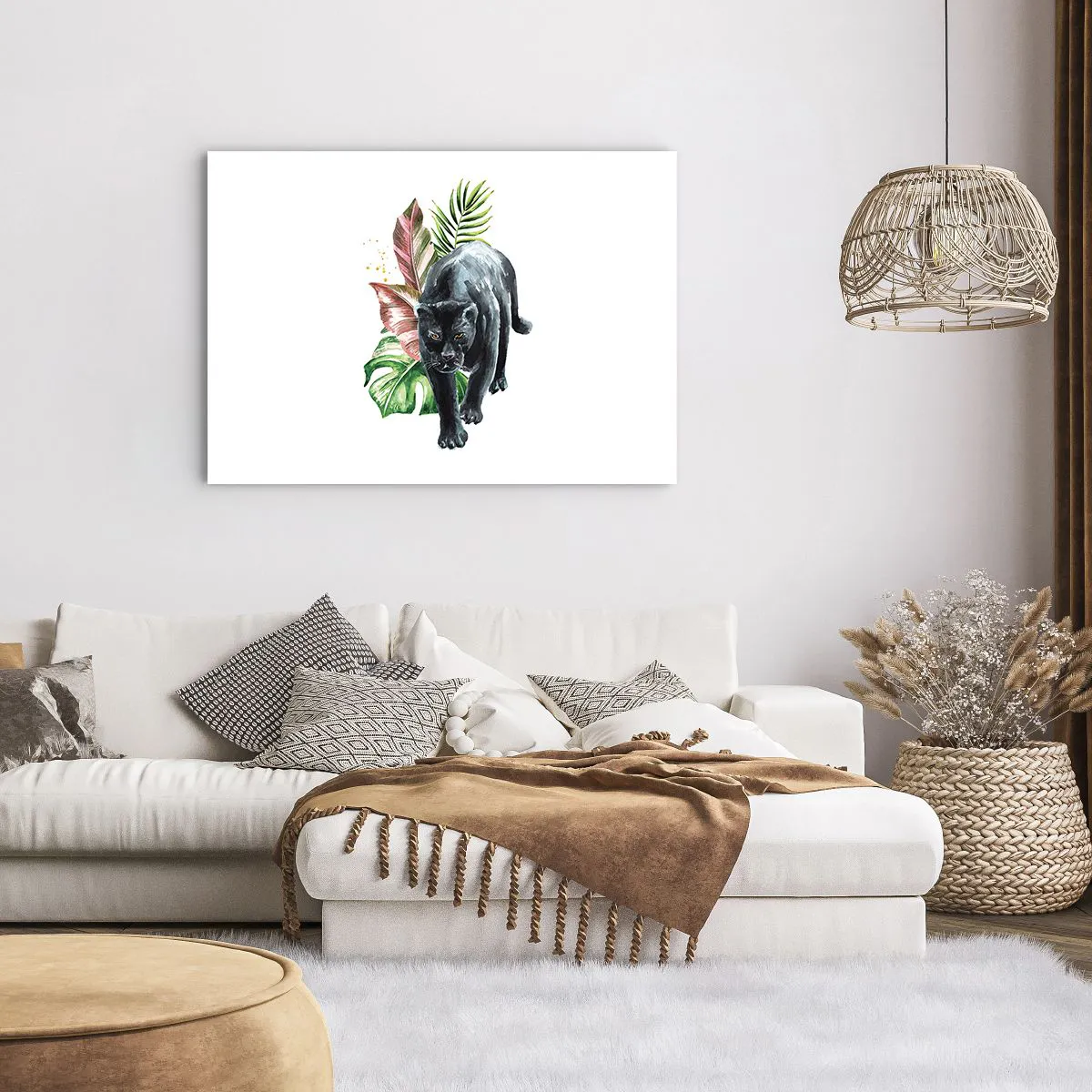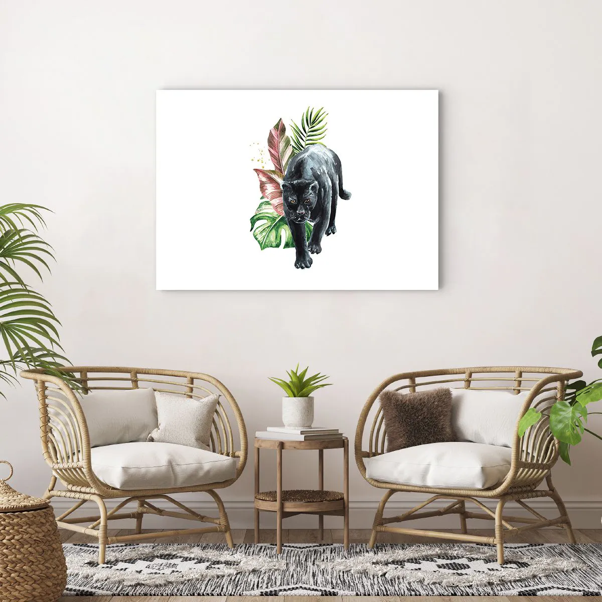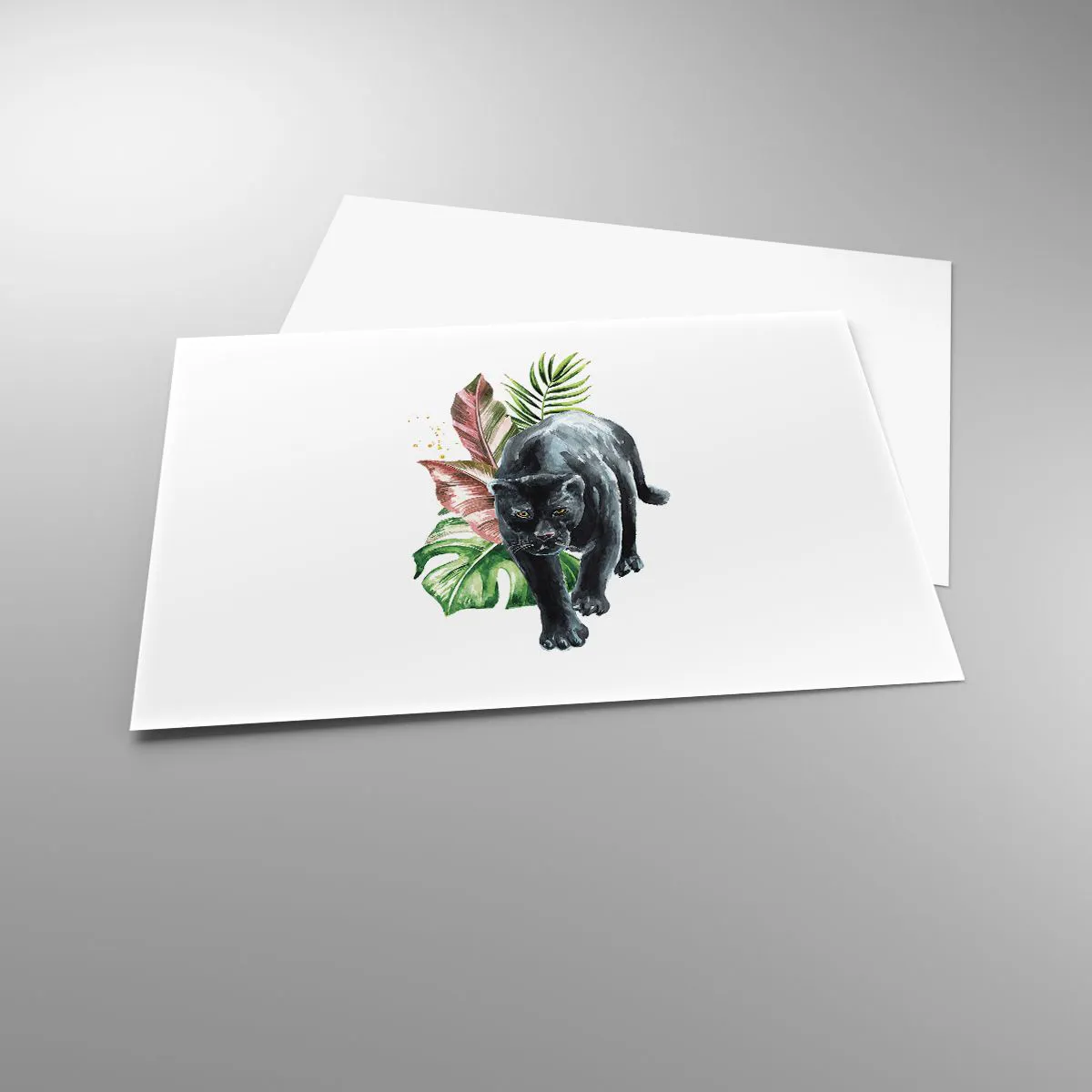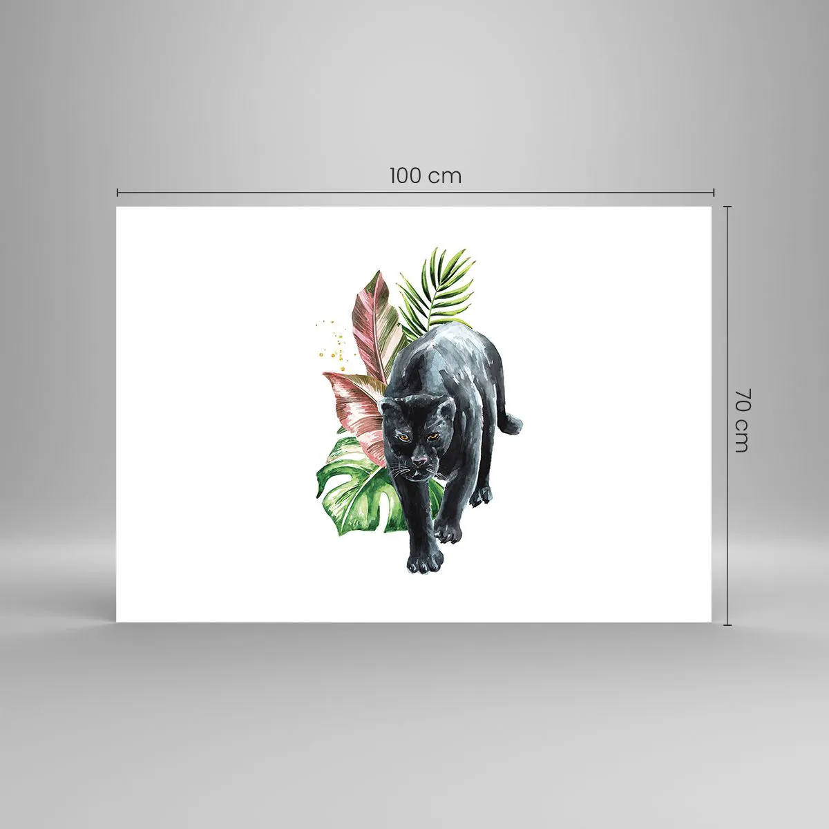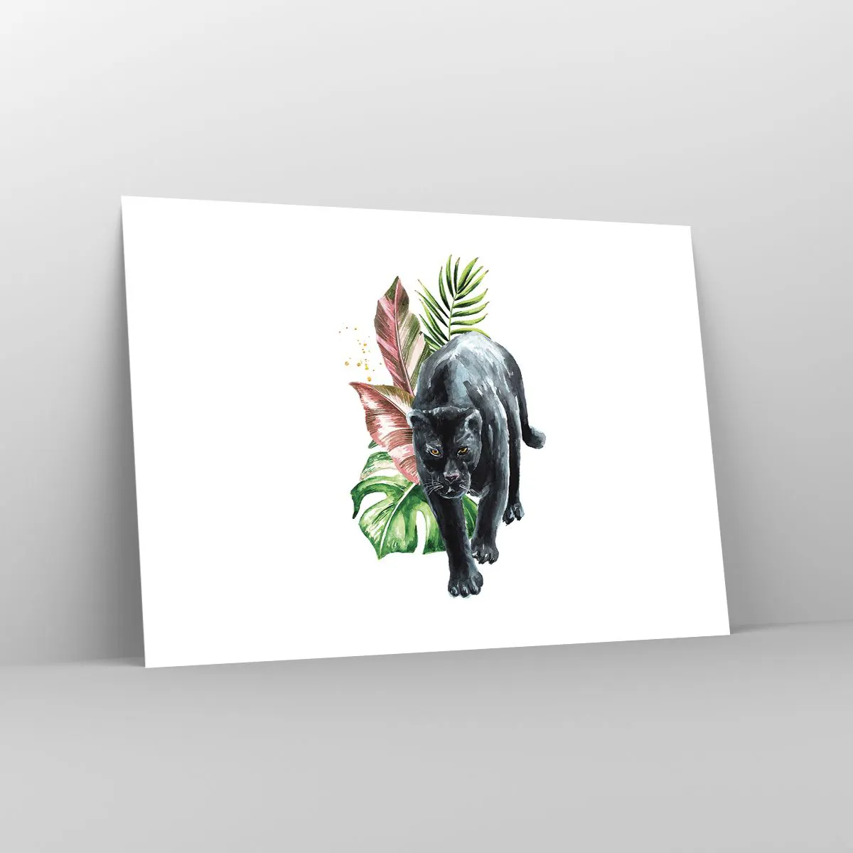 Plakat - Czarna pantera w otoczeniu tropikalnych liści - 100x70cm - Dzikość serca - Nowoczesna dekoracja ścienna do salonu i sypialni ARTTOR