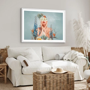 Plakat w białej ramie - Kobieta – kwiat - 40x40 cm