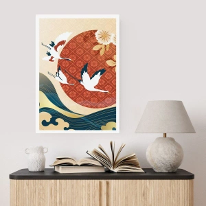 Plakat - Japońska kompozycja z żurawiami i falami - 100x70cm - Japońska baśń - Nowoczesna dekoracja ścienna do salonu i sypialni ARTTOR