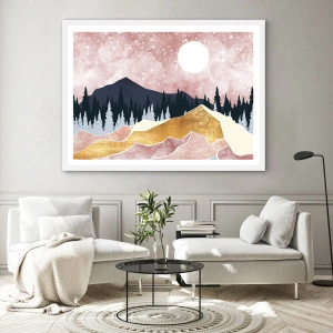 • Grafika, Krajobraz, Góry, Krajobrazy, Natura, Pastelowe, Pejzaże, Do biura, Do gabinetu, Do jadalni, Do przedpokoju, Do salonu, Do sypialni, Niebieski, Różowy, Złoty, Pionowy