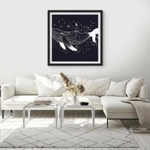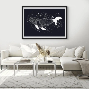 Plakat w czarnej ramie - Graficzna ilustracja wieloryba w kosmicznym stylu - 70x50cm - W oceanie wszechświata - Nowoczesna dekoracja ścienna do salonu i sypialni ARTTOR