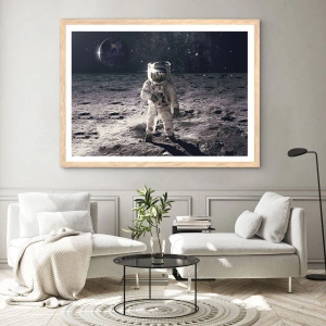Plakat w ramie jasny dąb - Pozdrowienia z Księżyca - 50x40 cm