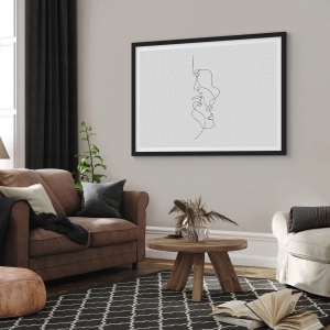 Plakat w czarnej ramie - Minimalistyczny kontur dwóch twarzy w czerni na jasnym tle - 50x70cm - Żar rzewnych żądz - Nowoczesna dekoracja ścienna do salonu i sypialni ARTTOR