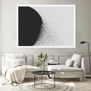 Plakat - Minimalistyczna abstrakcja z czarną plamą na jasnym tle - 50x70cm - Ruch cząsteczek - Nowoczesna dekoracja ścienna do salonu, kuchni i sypialni ARTTOR