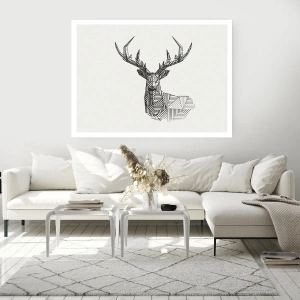 Plakat - Geometryczna sylwetka jelenia w czarno-białym stylu - 50x70cm - Jeleń w kubistycznym stylu - Nowoczesna dekoracja ścienna do salonu, kuchni i sypialni ARTTOR