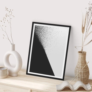 - Plakat z abstrakcyjnym wzorem w czerni i bieli, który zachwyca minimalizmem i nowoczesnym stylem. W zestawie czarna rama, gotowy do powieszenia, wymiar 50x70 cm.