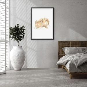 Plakat w czarnej ramie - Delikatny akwarelowy portret pary w czułym pocałunku - 50x70cm - Odnaleziona połowa? - Nowoczesna dekoracja ścienna do salonu i sypialni ARTTOR