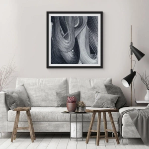 Plakat w czarnej ramie - Czarno-biała abstrakcja z dynamicznymi pociągnięciami pędzla - 70x50cm - Płynność rzeczywistości - Nowoczesna dekoracja ścienna do salonu i sypialni ARTTOR