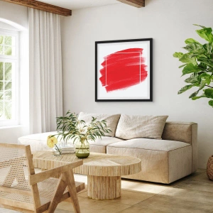 Plakat w czarnej ramie - Czerwony pędzel z białym konturem w minimalistycznym stylu - 50x70cm - Poza ramą - Nowoczesna dekoracja ścienna do salonu i sypialni ARTTOR