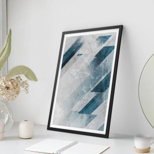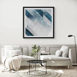 Plakat w czarnej ramie - Abstrakcyjne linie w odcieniach szarości i błękitu - 70x50cm - Kompozycja przestrzenna – ruch szarości - Nowoczesna dekoracja ścienna do salonu i sypialni ARTTOR