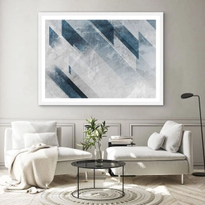 Plakat w białej ramie - Kompozycja przestrzenna – ruch szarości - 91x61 cm